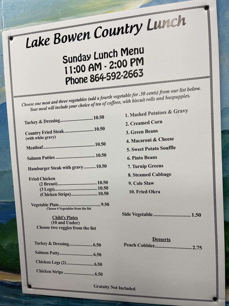 When stepping into Lake Bowen Fish Camp, you are transported to a quintessential fish camp experience by the scenic lake view and relaxed atmosphere. The menu boasts classic seafood dishes like fried flounder, shrimp, and catfish fillet plates cooked to perfection. While some customers rave about the exceptional service and generous portions, others note the lack of seasoning and the rustic charm of the old building. This cash-only establishment is ideal for a casual gathering with family or friends, offering outdoor seating and a welcoming environment. If you appreciate straightforward, no-frills dining with a focus on tasty seafood at a great price, Lake Bowen Fish Camp is a must-visit spot in Inman, SC.